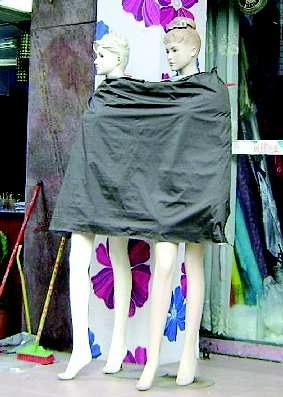自述:两“模特”被一块布包