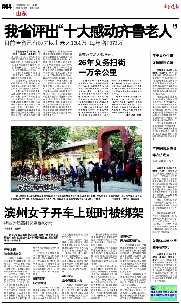 我省评出“十大感动齐鲁老人”