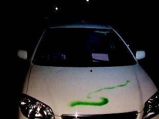 谁想两个小时后,当刘先生准备开车离去时,却发现爱车遭人喷漆“毁容”。一开始,刘先生以为是自己的车挡了别人的道儿,是有人泄愤。可后来,他才发现遭殃的不光是自己,路边的多辆私家车也是如此,车主多是该小区的居民,甚至一辆没挂牌的白色越野车车身被喷了一圈自喷漆,而且还是红绿两种颜色。