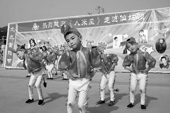 16日,望岛幼儿园的小朋友在《人来风》节目录制现场表演。