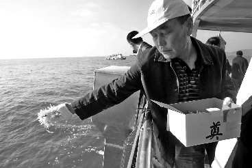 淄博市周村区的姚玉霞跟丈夫、女儿、侄子四人22日晚上赶到青岛,为自己的公公婆婆进行海葬。“这是我第—次参加海葬活动,感觉既环保又神圣。”姚玉霞说,海葬不但节约了买墓地的成本,而且—见大海就可以想到逝去的亲人,更具纪念意义。70多岁的杨老先生当场宣读了—份给父母的悼词:“来于海洋,又回归海洋,愿你们在天安息……”