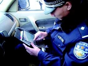 9日,垦利民警在街头执勤时,利用电子设备即时查询可疑车辆情况。近日,11O数字警务系统移动终端在垦利县城区投入使用。民警在执勤巡逻中可以充分利用该设备进行公安信息查询,对可疑人员、车辆进行信息比对。
