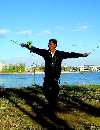 8日下午,东营市空竹队的丁师傅在东城明月潭假日公园抖起了空竹。丁师傅是东营市空竹队的老队员了,只要天气好,他就会和队友们到这里抖空竹。“我们空竹队的口号是‘快乐地抖起来’。”丁师傅笑着说。抖空竹也成为越来越多老年人的生活爱好。