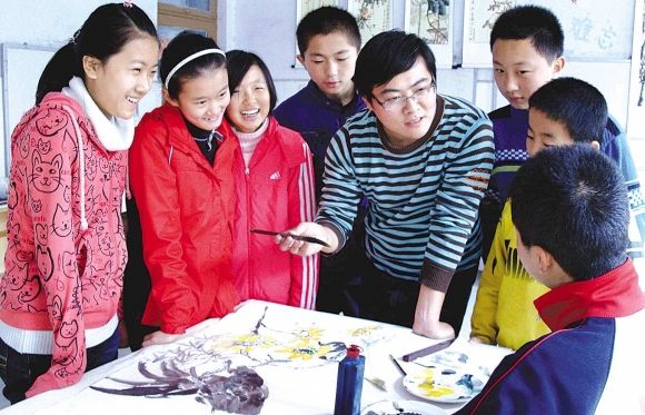 12日,经石峪书画院指导老师梁英群正在和绘画社团的同学们一起探讨绘画技巧。据悉,泰山博文中学为全面推进素质教育,新增了军乐队、拉丁舞、机器人训练营三个社团,报名学生达834名。