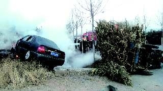 28日下午4时,在烟台市福山区高疃镇北村与栖霞市交界处的主干道上,一辆尼桑轿车在躲避路口突然出现的一辆三轮车时,突然失控冲进路旁沟里,轿车与障碍物碰撞后起了火。福山消防大队迅速赶到现场扑灭了火。据了解,轿车上的两个人和三轮车上的一人身体均无大碍。