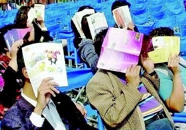自述:阳光太刺眼,看演出的观众如此遮阳。