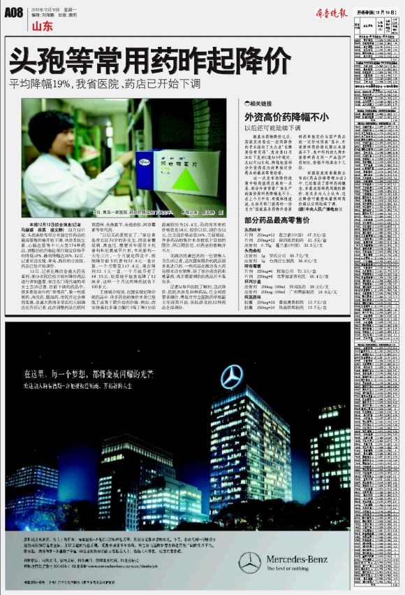 头孢等常用药昨起降价