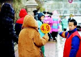 本报12月13日讯 “下雪了,路比较滑,请慢点走。”13日中午,来自山师附小五年级3班的10余名小“百姓城管”在山师附小门口对放学秩序进行了维护,赢得了家长们的称赞。