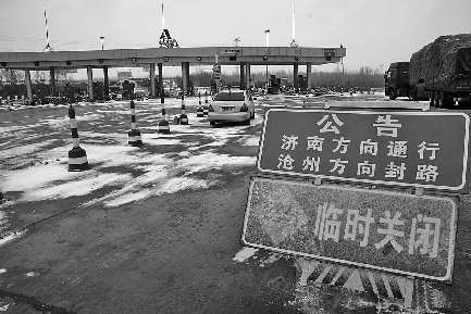 13日上午9点多,记者来到京台高速公路德州入口,发现往北京方向的道路已经封闭,往济南去的方向仍是畅通的。“河北那边的雪下得比较大,所以北上的线路临时封闭了。”高速公路路政工作人员说,当时京台高速公路德州段北上的车较少,往济南方向的车稍多些,为了保持高速公路畅通,他们一大早就上路,疏导交通,并备上热水,为过路司机服务。