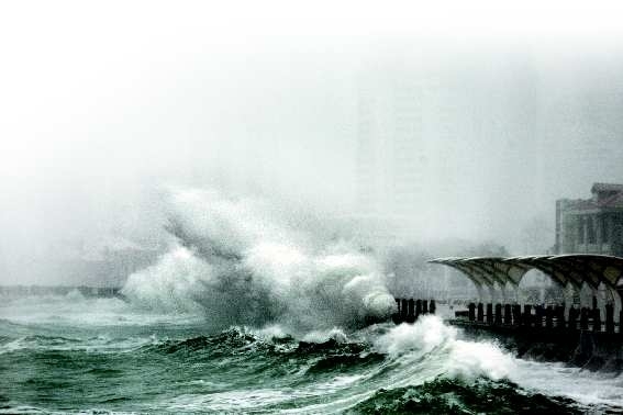 受强风影响,滨海广场附近的海岸大浪滔天。 本报记者 赵金阳 摄