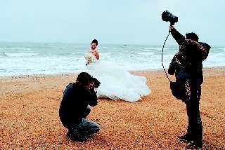 拍摄婚纱照。 本报记者 吴永功 摄