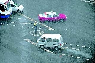 风雪交加中,交警在十字路口指挥着交通。本报记者赵金阳通讯员王贤才摄
