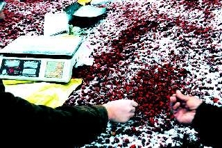 红利市场的乐陵小枣上落满了雪花。本报记者郭建政 摄