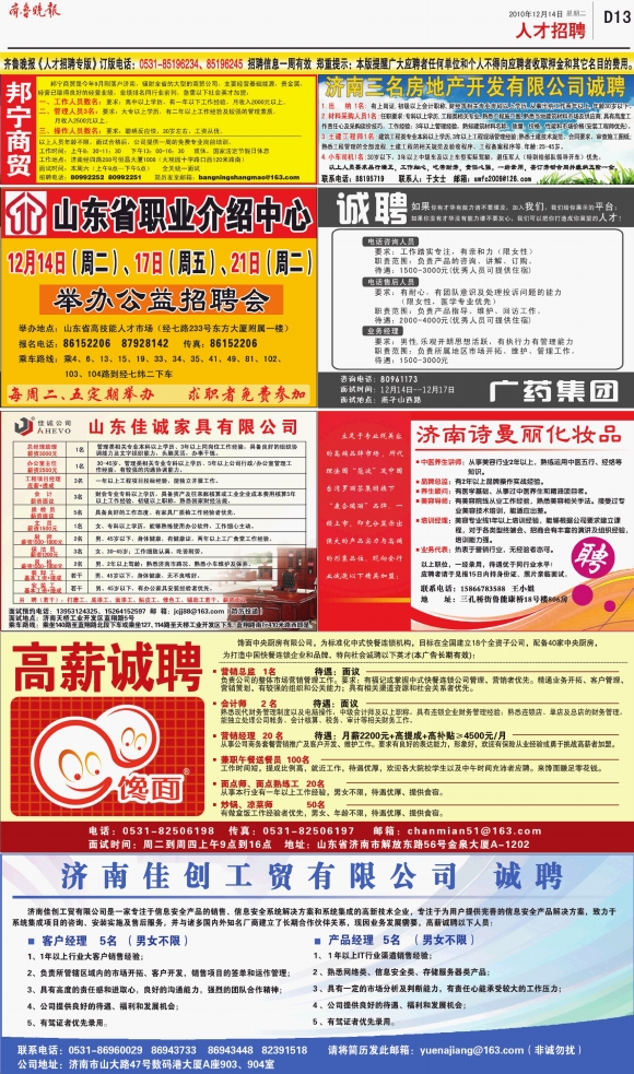 第D13版:人才招聘