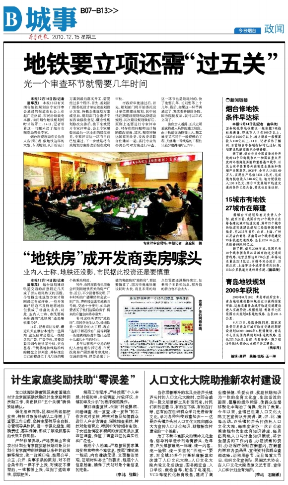 烟台修地铁条件早达标