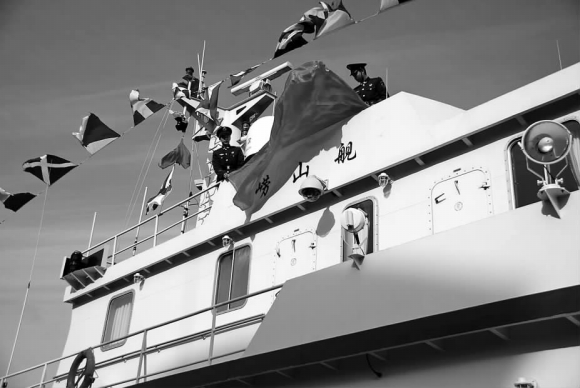 12月15日上午,山东公安海警部队“第一舰”———山东海警第二支队37001舰在青岛海警码头被正式命名为“崂山舰”。