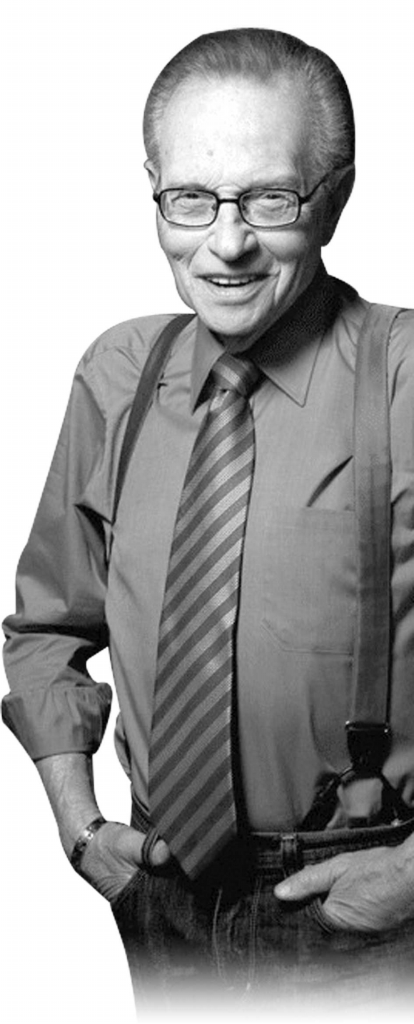 拉里·金(LarryKing),原名劳伦斯·哈维·齐格勒(LawrenceHarveyZeigler),1933年11月19日出生在纽约布鲁克林,是一对开饭馆的白俄犹太移民夫妇的次子。拉里·金没上过大学,他在布鲁克林长大并读完公立中学,高中毕业后曾做过包括临时邮差在内的零工,22岁时为了找一份广播工作离开布鲁克林来到迈阿密,在一家小电台当看门人。1957年,电台一个播音员的不辞而别,让24岁的他有了崭露头角的机会,当上了电台DJ。老板嫌他的原名少数民族色彩太强而且太难记,于是他改用“拉里·金”这个响亮的艺名,顺便也昭示自己有朝一日要在播音界“为王(King)”的抱负。
