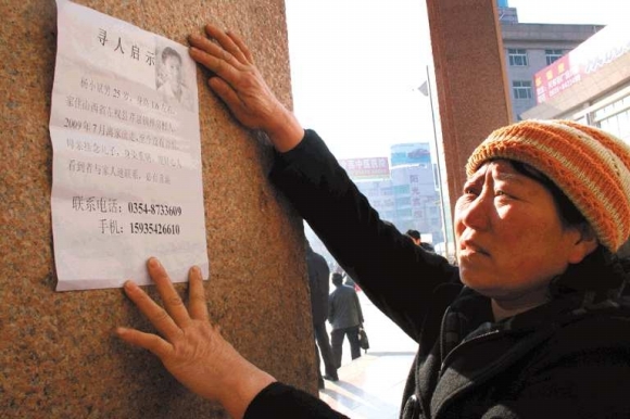 25日下午3点多,杨爱林夫妇手拿着寻人启事,在聊城汽车总站附近一张一张地粘贴着。杨爱林说,他家在山西省左权县芹泉镇禅房村,去年7月16日,儿子杨小斌和女友分手后离家出走,至今没有任何线索。从去年8月开始,杨爱林和妻子到左权、太原等地寻找,始终没有消息。