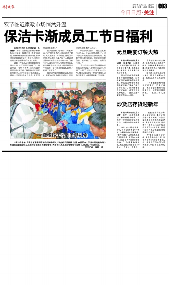 保洁卡渐成员工节日福利