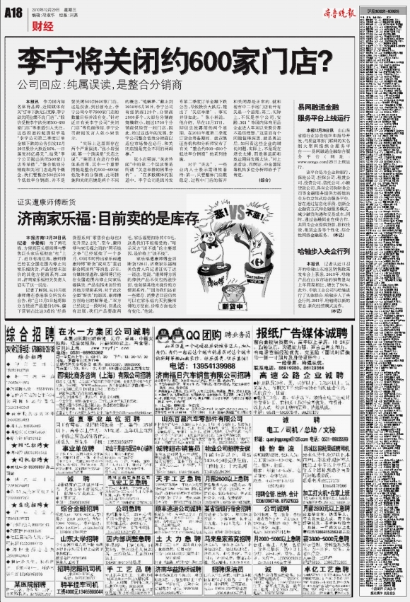 济南家乐福:目前卖的是库存
