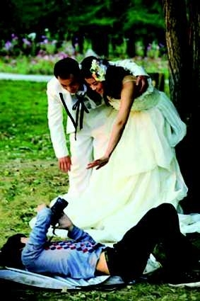 时间:2010年10月;地点:临沂生生园内;自述:摄影师躺在地上在给一对新人拍摄婚纱照,很有角度。