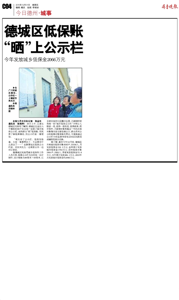 德城区低保账“晒”上公示栏