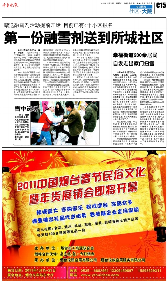 幸福街道200余居民自发走出家门扫雪
