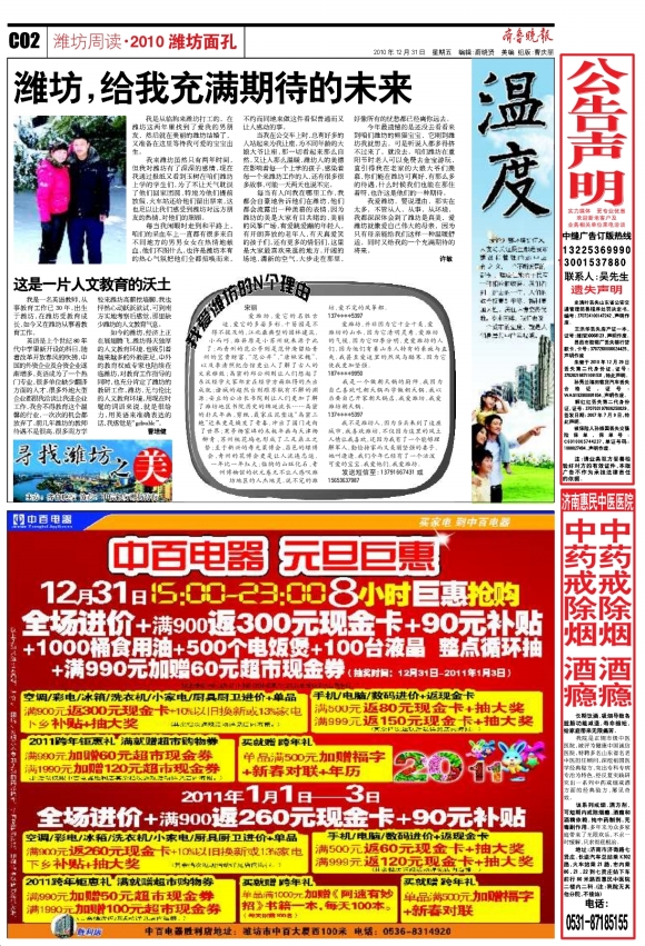 第K12版:今日潍坊·潍坊周读·2010潍坊面孔