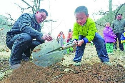 市民上山种植“低碳补偿林”的