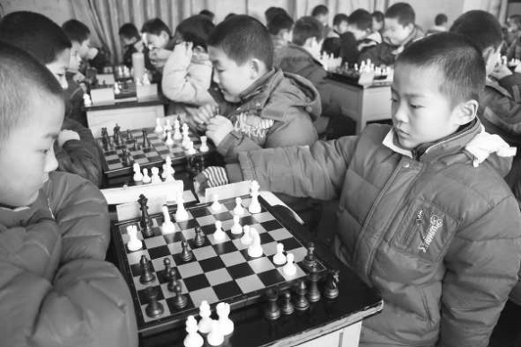 1日上午,聊城市体育局体育总会举行2011年聊城市第四届围棋·国际象棋锦标赛,比赛分为棋士组、棋手组、无级别组、女子组和家长组。图为:棋士组的小选手在比赛。