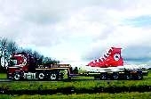 长5.5米,宽2.1米,高2.9米。这只鞋有多大?相当于英国鞋的845码。设计师选用匡威帆布鞋全明星系列39码作为原型制造了这只鞋。2010年11月17日这只鞋在荷兰阿姆斯特丹首次与世人见面。