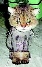 一只剃了毛的猫,不但不狼狈,反而成为网友新宠。网评:“犀利的眼神,霸气的UGG,深刻的‘乳沟’,潮猫啊!”