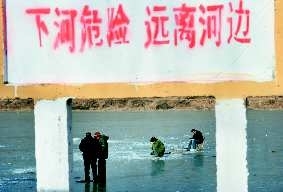 连日来,冰封的河道和湖面吸引了许多市民凿冰捕鱼,也有不少学生溜冰玩耍。看似充满乐趣,实则很危险。