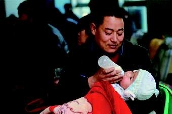 16日上午,在临沂火车站候车大厅,一市民在喂孩子喝奶粉。每年春运期间,在行色匆匆的返乡人潮中,总是能看到孩子们的身影。年复一年,他们跟随父母们在城市间“迁徙”。