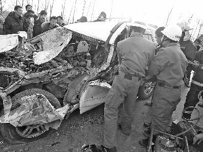 1月16日下午3时34分,梁山消防大队接到报警,该县城区南环城路段发生一起车辆追尾事故,一辆越野车从后方撞上一辆大型拖挂货车后,车头钻入货车车底,越野车司机受伤被困车内。接警后,梁山消防立即出动一辆大型消防车和一辆抢险救援车,12名消防官兵赶赴现场施救。