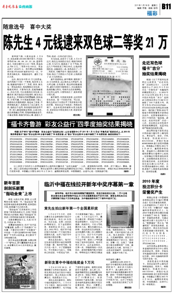 临沂中福在线拉开新年中奖序幕第一章