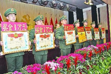 1月19日上午,武警济南市支队召开了2010年度总结大会,曾在京沪铁路路基坍塌抢险、九顶莲花山山林大火扑救、全市流动警务多警联合巡逻等任务中做出突出贡献的105名先进个人和28个先进集体分别受到表彰。 本报通讯员 曲安东 姜洪斌 摄