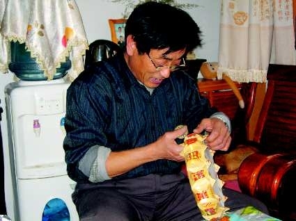 不抽烟不喝酒的王世忠,平时爱“动手”。马上过年了,王世忠又在家忙着用烟盒做糖果盒子。“谁家要是用得着,拿去用着也方便。”王世忠边忙手里的活边说。