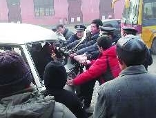 现场民众与民警一起营救被困驾驶员。