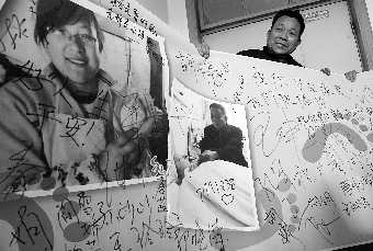 “我们的校友正在遭受病痛的折磨,用她微薄的力量与病魔抗争,用她坚强的意志诠释着生命的美好……”24日上午10时,鲁东大学师生代表一行五人,将千余名师生签名的“爱与希望同行”条幅交到了张广秀的手中,并祝福她早日康复。
