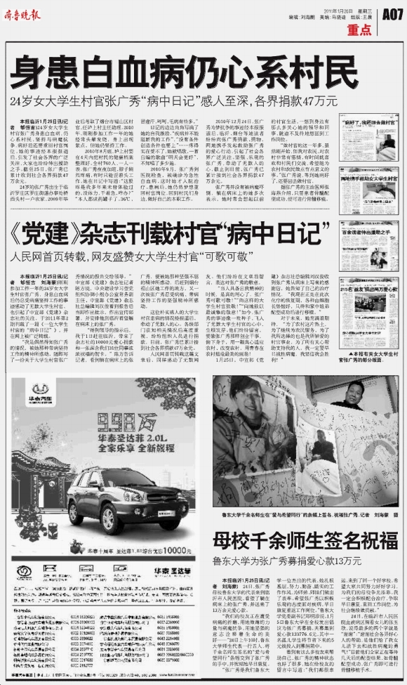 《党建》杂志刊载村官“病中日记”