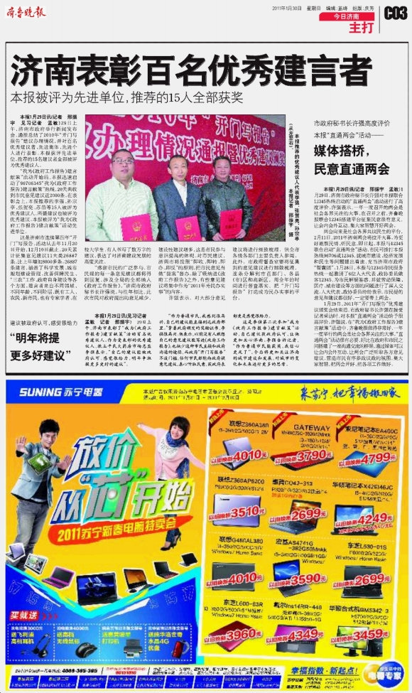 济南表彰百名优秀建言者
