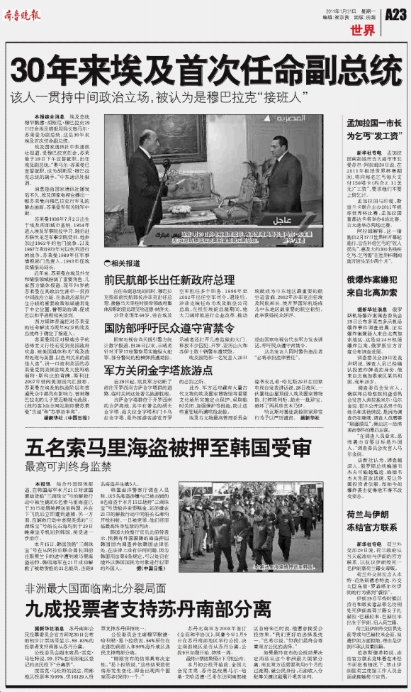 30年来埃及首次任命副总统