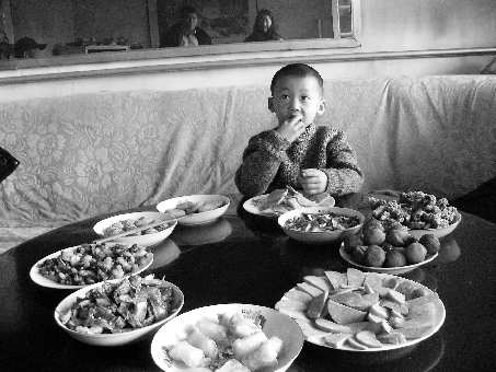 正月初一中午,家人做了一桌子美味佳肴,8岁的侄子捷足先登,一个人坐在桌前吃了起来,等大家开饭时他已经吃饱了。 济南 张汝峰 摄