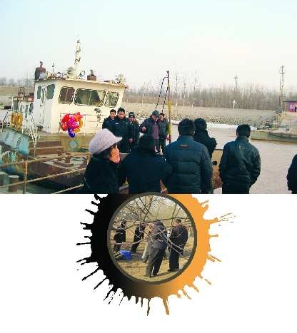 下午3点10分,在东城浮桥南岸,记者看到,黄河河岸两边已经全被冻住,河中央依旧是湍急的黄河水。一艘拖船正在东边航行。据东城浮桥的工作人员张先生说,接到群众的求助后,他们就派出了浮桥管理处的一艘轮船,对附近河岸进行搜寻,然而到目前为止还没有发现失踪者的影子。“河水很深很急,天又冷,打捞工作有一定难度。”张先生说。