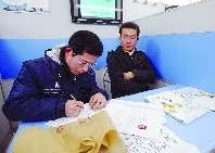 “用工荒”改变了应聘者的地位,应聘者张成佐(左)和招聘者“平起平坐”,在招聘席内仔细填写用工表。本报记者 张中实习生 刘敏 摄