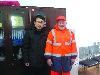 ▲尹层当和他的博士儿子。 十一年坚持扫马路,培养出博士儿子。 殷亚楠 摄