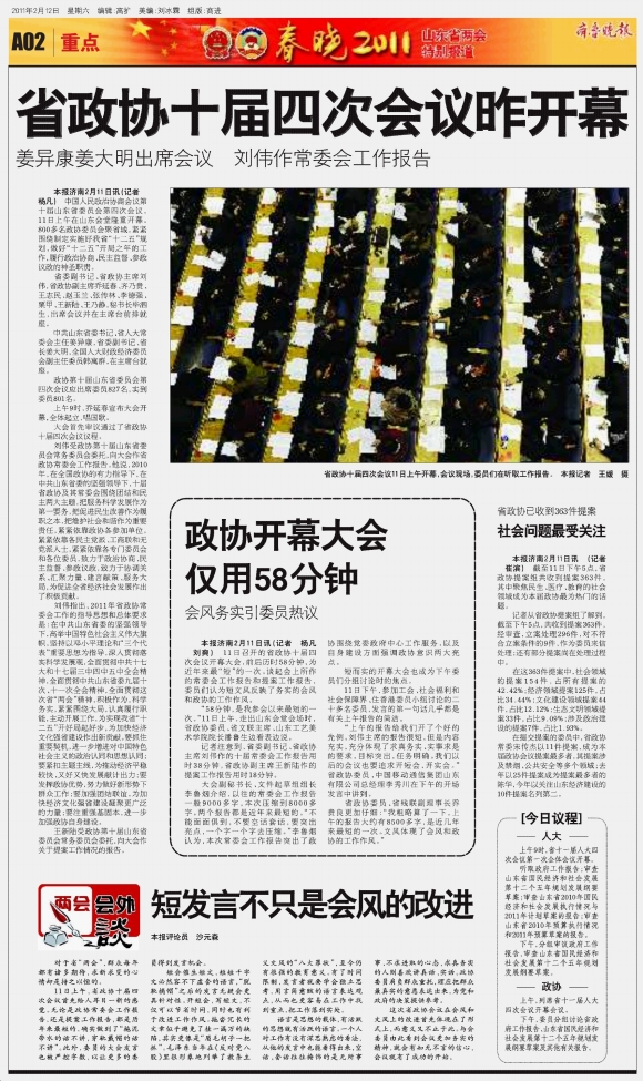 政协开幕大会仅用58分钟