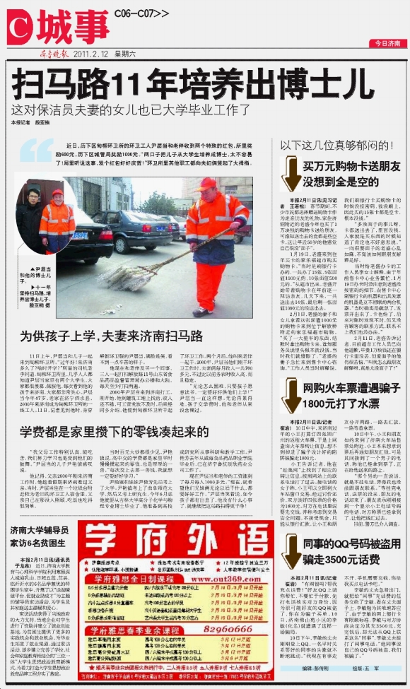 扫马路11年培养出博士儿