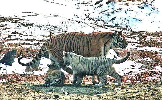 2月15日,济南动物园狮虎山,两只去年秋季出生的小老虎首次跟着妈妈出笼,一黄一白两只小虎在雪地上欢蹦乱跳,玩得不亦乐乎。据园方称,这是该园首次有白虎繁殖成功。